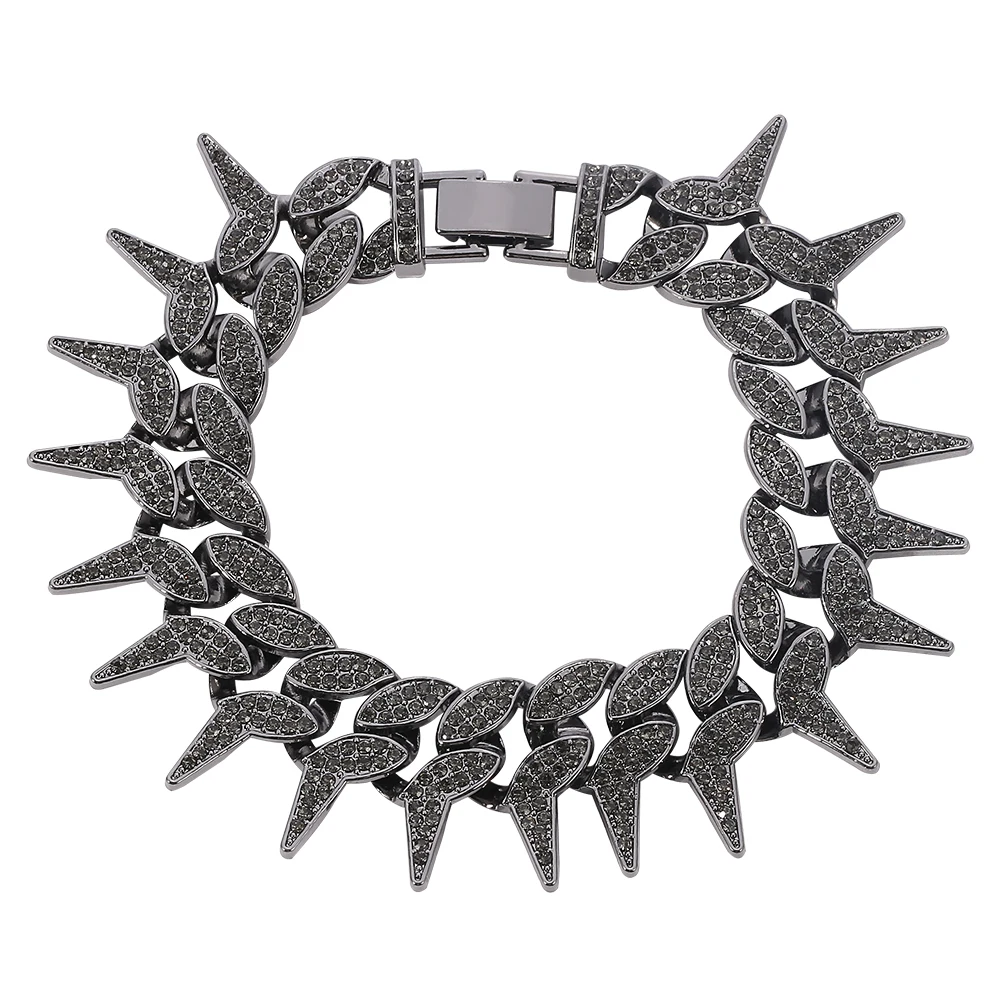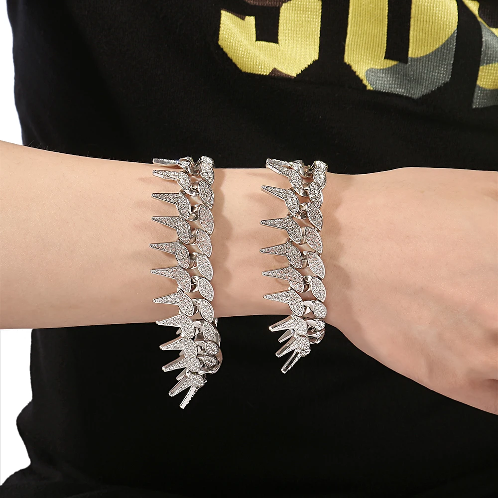 Make a bold statement with the MINISO Hip Hop Shiny Spike Cuban Link Bracelet, a striking accessory designed for both men and women. Featuring iced-out rhinestones and edgy spike accents on a classic Cuban link chain, this bracelet perfectly blends punk attitude with luxury bling, making it ideal for parties, concerts, or everyday streetwear fashion.
